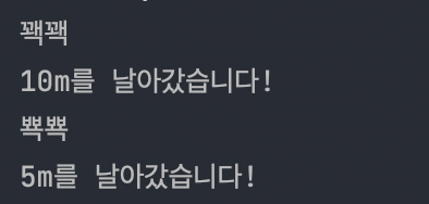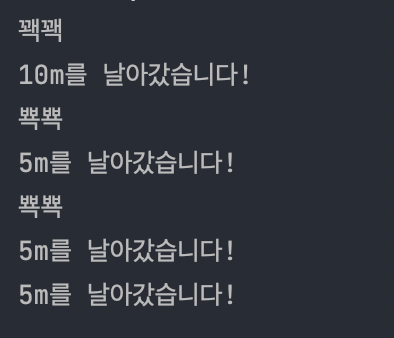 그리고 오리 인터페이스를 구현한 청둥오리 구현체와 칠면조 인터페이스를 구현한 야생 칠면조 구현체입니다.
